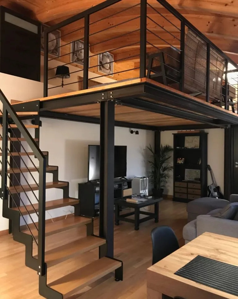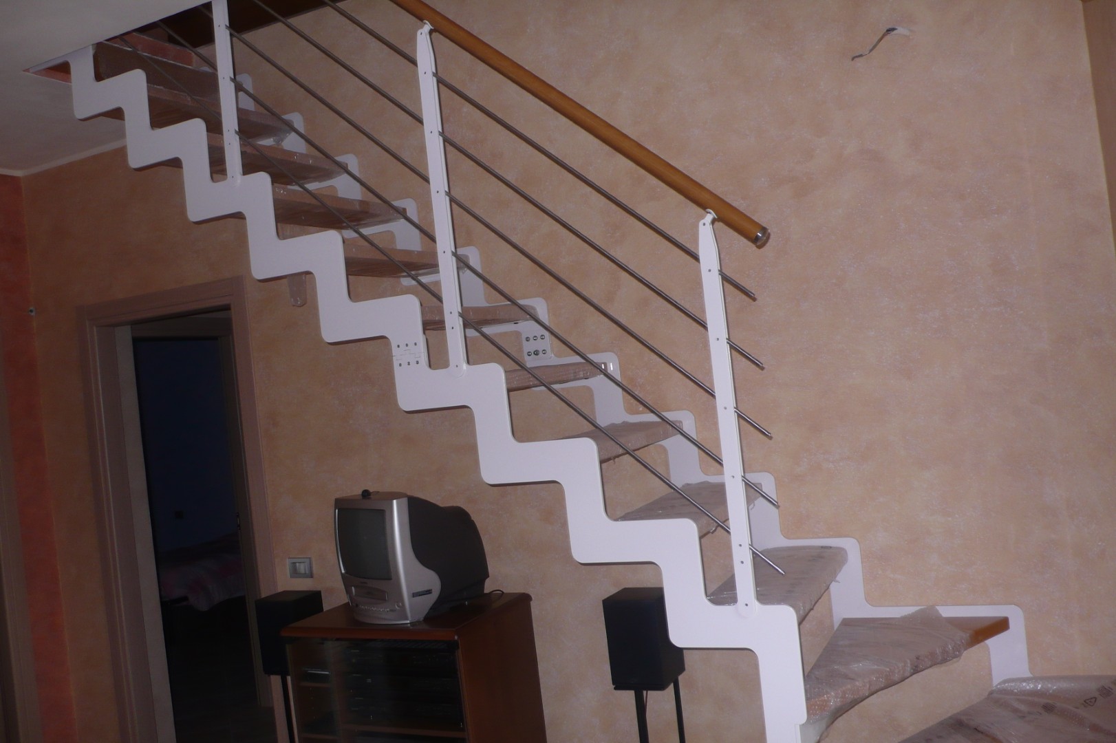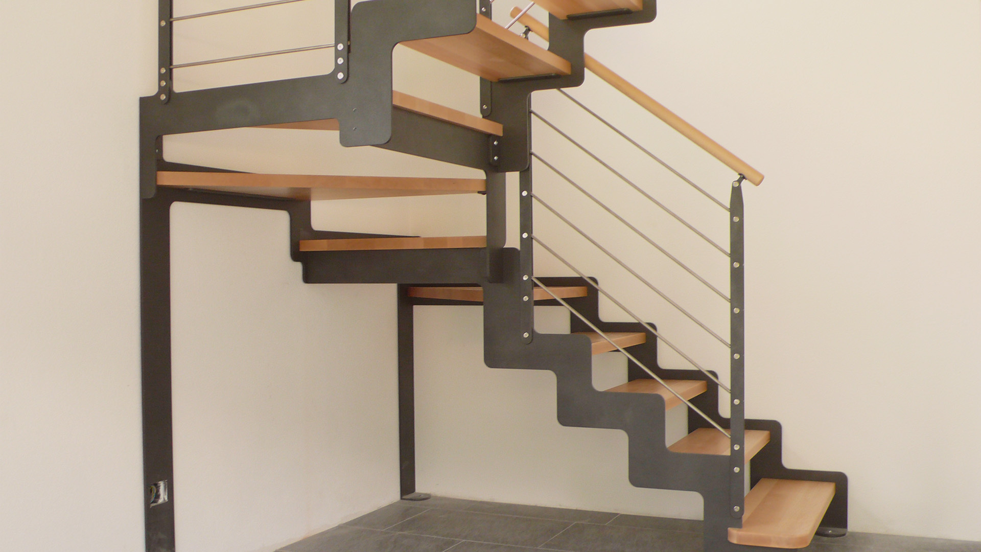 Efferre scale produce scale con doppia lama in ferro. Questi modelli di scale a giorno, progettati su misura, sono realizzati con tecnologia a taglio laser e presentano una doppia struttura portante in metallo. L'andamento della scala può essere a salti o lineare, in base alle specifiche esigenze del cliente. I gradini sono realizzati in legno, mentre le ringhiere sono disponibili in: