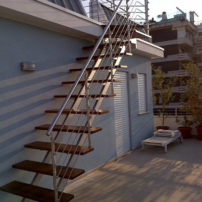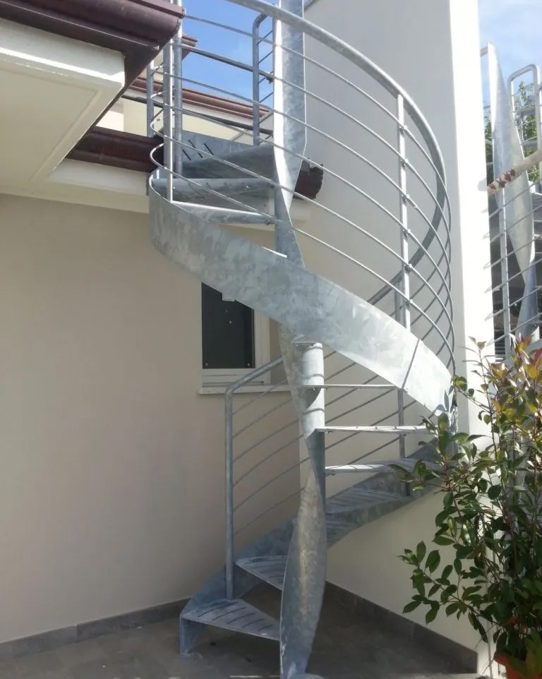 La progettazione e realizzazione di scale esterne e scale di sicurezza è all'ordine del giorno. Questi modelli di scale offrono un'ampia possibilità di personalizzazione per forme, misure, materiali e finiture. Questi sono solo alcuni esempi: